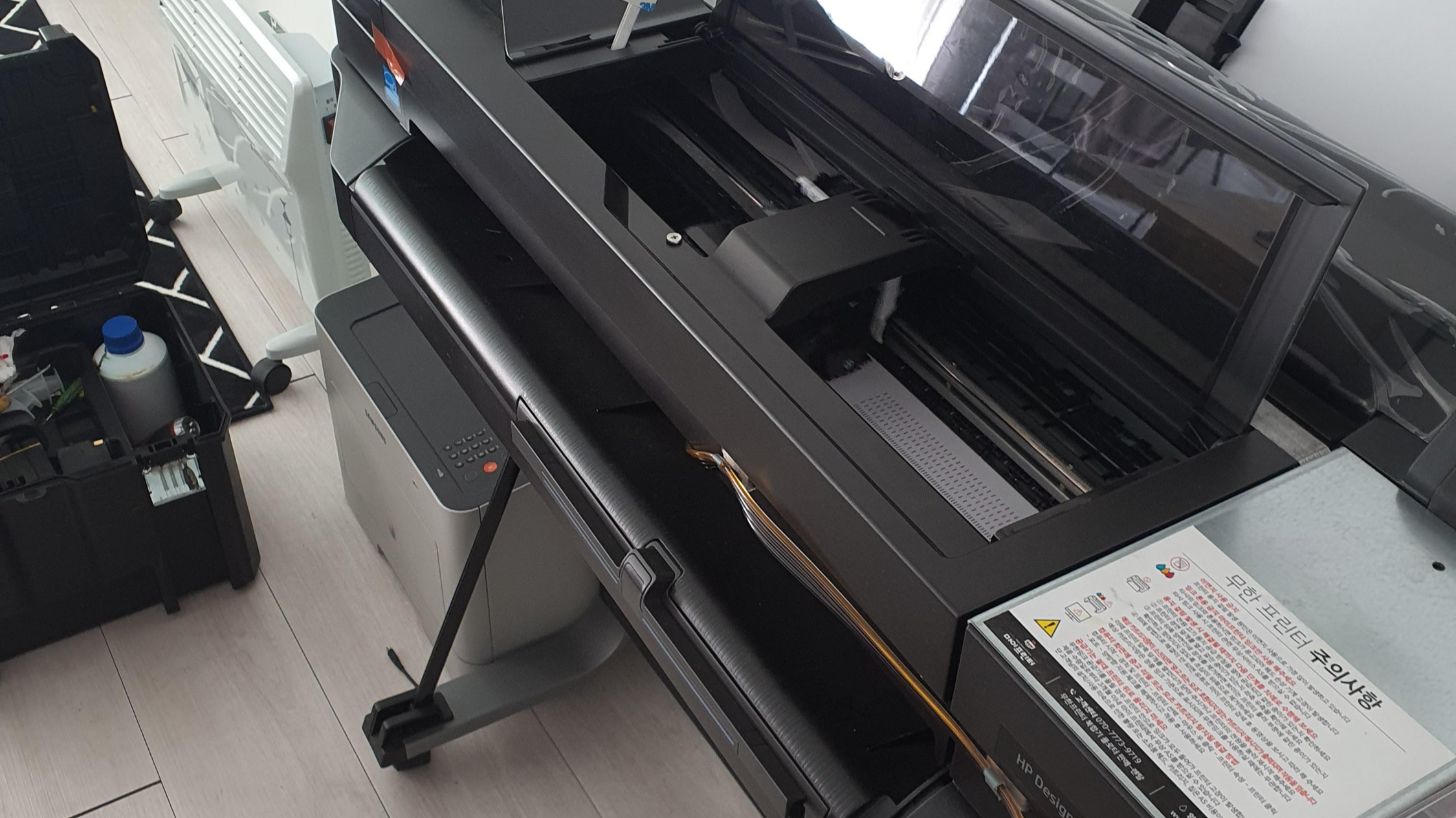 사무실 내의 직원들이 플로터라는 기기를